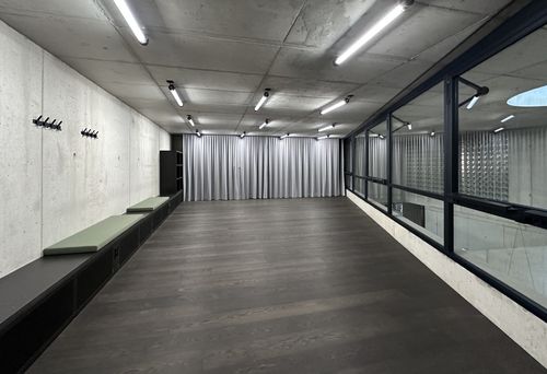 Ob Yoga, Pilates, Tanz oder Theater – auf 54 m² offener Fläche mit Parkettboden findest du den idealen Raum für jede Form der Bewegung.